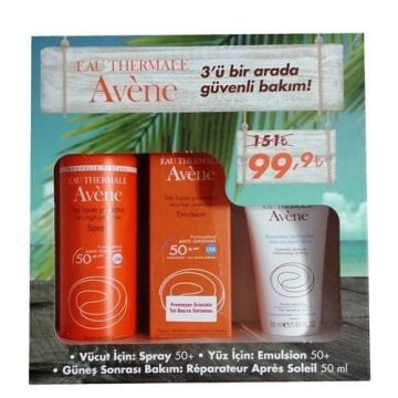 Avene Emulsion Spf 50+ 50 ml + After Sun 50 ml + Sprey Spf 50 Güneş Kremi
