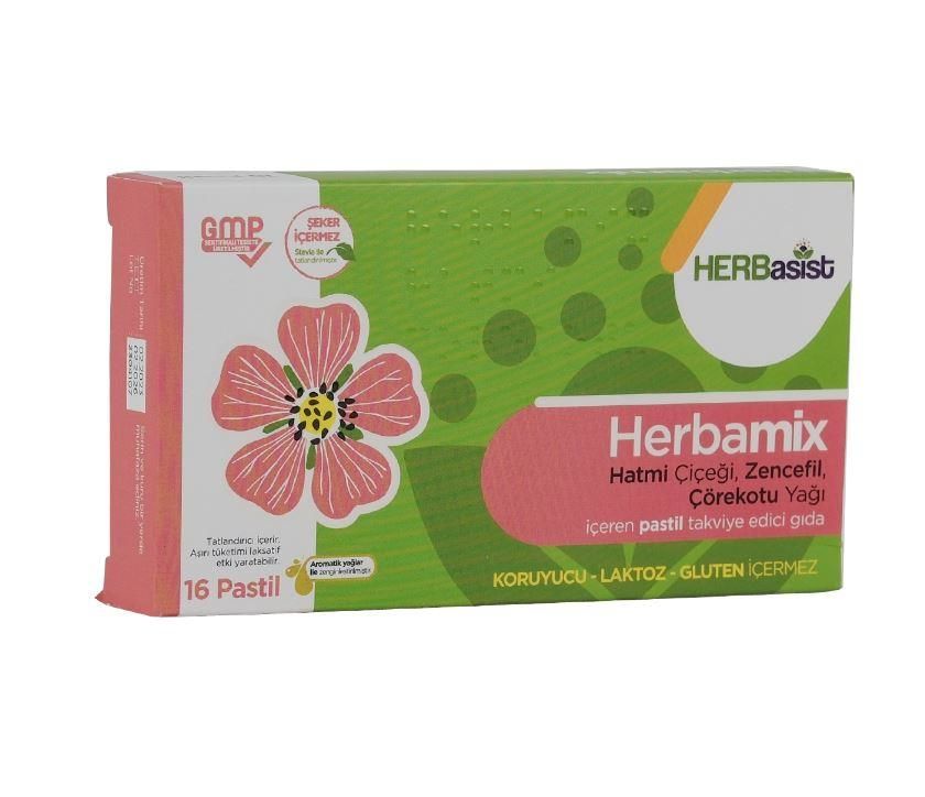 Herbasist Herbamix 16 Pastil, özel bitkisel karışım içeriğiyle tasarlanmış bir boğaz pastilidir. Doğal bitkisel özlerin birleşimi, boğazı yatıştırmaya ve ağız içi hijyenini desteklemeye yönelik olabilir.