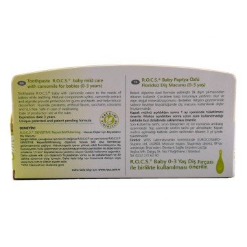 - Bebekler genellikle diş macununu yuttuklarından, florid, sodium lauryl sulphate, yapay tatlandırıcı ve renklendirici içermez. Baby bebekler tarafından yutulabilir.