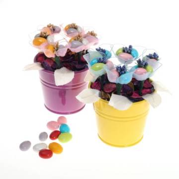 Leziz Çikolatalı Badem Şekeri Kovası Renkli Lale