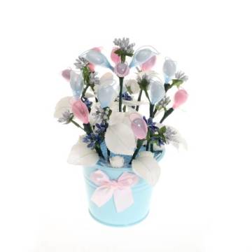Yenilebilir Çikolatalı Badem Şekeri Çiçek Kovası Trio (Yapay Çiçek)